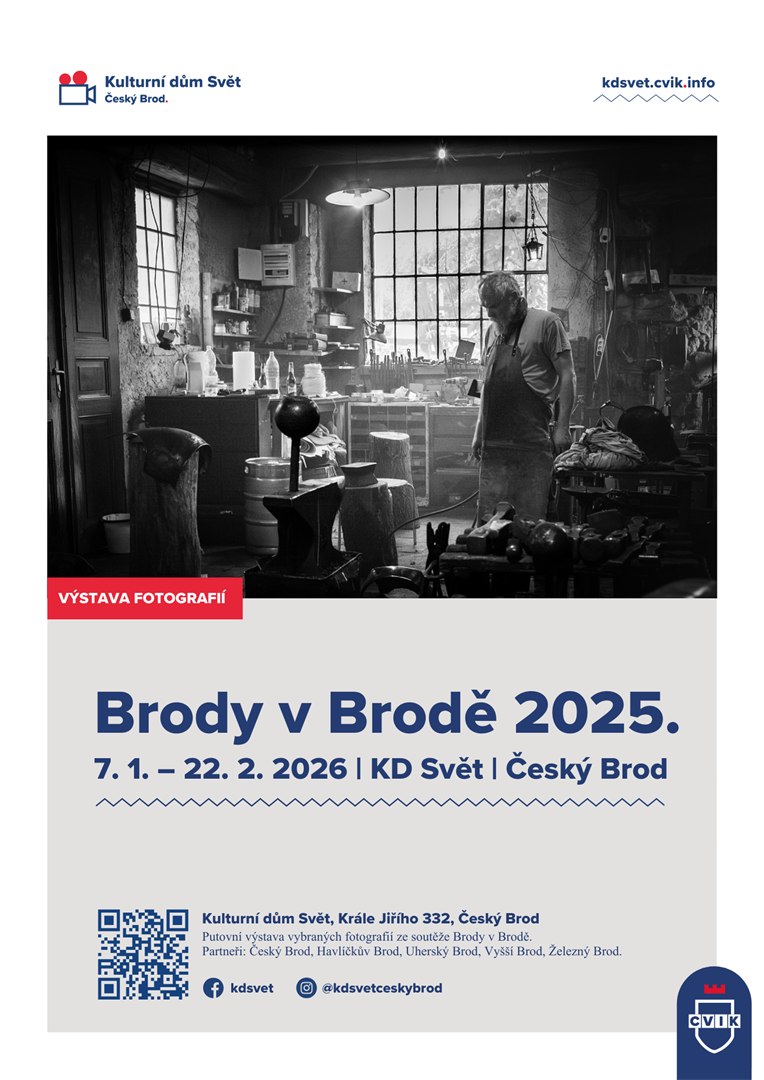 Zveme vás na putovní výstavu fotografií z 13. ročníku soutěže Brody v Brodě. V termínu 7. ledna - 22. února budou oceněné fotografie vystaveny ve foyer KD Svět. Přední příčky obsadil i fotograf Vratislav Beleni z Českého Brodu. Gratulujeme!