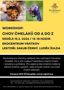 Můžeme i my pomoci? Workshop pro všechny nadšené, ale i začínající chovatele čmeláků. Naučíme se připravovat čmelín tak, aby se to čmelákům líbilo. Přednáška Jakub Černý, Luděk Šulda.