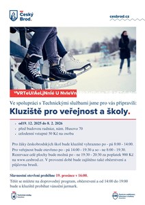 Během provozní doby bude zajištěno také občerstvení a půjčovna bruslí.
