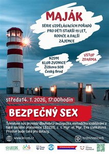 NZDM Klub Zvonice zve všechny děti starší 13 let, rodiče i další zájemce na další setkání ze série vzdělávacích pořadů MAJÁK na téma Bezpečný sex.