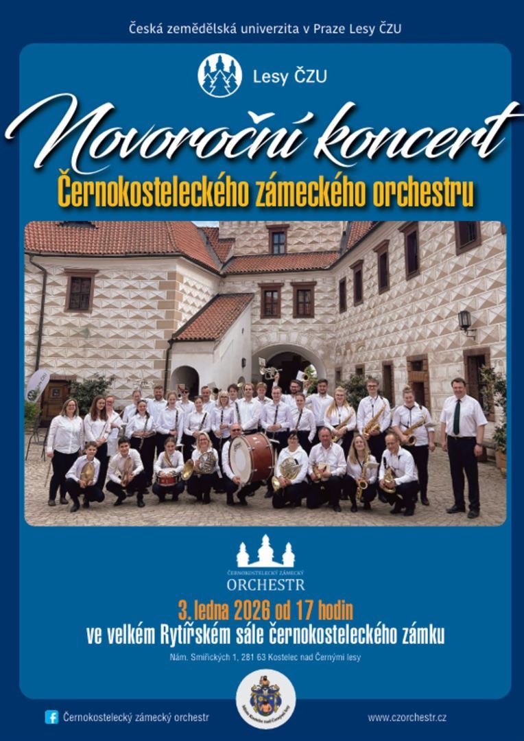 Novoroční koncert Černokosteleckého zámeckého orchestru sobota 03. ledna 2026 Místo konání: Kostelec nad Černými lesy Čas: od 17:00 Pořadatel: ČZU Štítky: hudba Popis akce Pozvánka na novoroční koncert v černokosteleckém zámku. Vstupné dobrovolné. Zpět