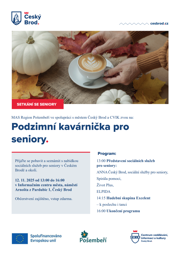 MAS Region Pošembeří ve spolupráci s městem Český Brod a CVIK vás zvou na odpolední "Podzimní kavárnička pro seniory".