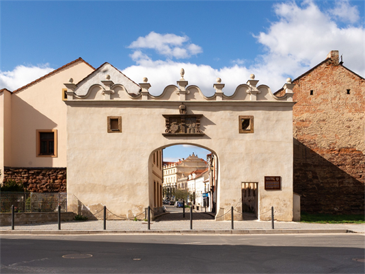 Geschichte: Die ursprüngliche Holzmauer reichte nicht aus, um die Stadt zu schützen, also musste eine Steinmauer gebaut werden, um die Einwohner, Gebäude und Waren zu schützen. In den Jahren 1343–1364 wurde es unter Arnošt von Pardubice gestärkt und erweitert. Aus derselben Zeit stammt auch der Bau der Befestigungsanlagen mit drei Haupttoren der Stadt: Pražská, Liblická und Kouřimská. In der zweiten Hälfte des 15. Jahrhunderts wurde um den Stadtkern eine neue spätgotische Befestigungsanlage errichtet, für deren Bau Permocarbon-Sandstein aus einem Steinbruch am Rande der Stadt verwendet wurde. Die Mauer wurde durch mindestens neun Bastionen verstärkt, und die Mauer war von einem Graben umgeben, der vom Fluss Šembera und Teichen über der Stadt gespeist wurde. Während des Dreißigjährigen Krieges wurden unter anderem die Befestigungsanlagen der Stadt beschädigt. Aus den 50er Jahren des 17. Jahrhunderts, als es zuletzt umgebaut wurde, ist der Spätrenaissanceeingang des Kouřim-Tors erhalten geblieben. Das Kouřim-Tor selbst wurde zusammen mit dem Liblicka-Tor auf Anordnung des böhmischen Gouvernements und des Kreisamtes Kůrom aus dem Jahr 1839 abgerissen. Das gleiche Schicksal ereilteeinige Jahre später das Prager Tor, das in einem schlechten Zustand war und einzustürzen drohte.Gegenwart: Im östlichen und südöstlichen Teil des Altstadtrandes ist heute ein durchgehendes Band aus Sandsteinmauern mit drei Bastionen und dem Eingang des Kouřim-Tores zu sehen.Die Stadtbefestigung von Český Brod ist in der Zentralen Liste der unbeweglichen Kulturdenkmäler der Tschechischen Republik eingetragen.