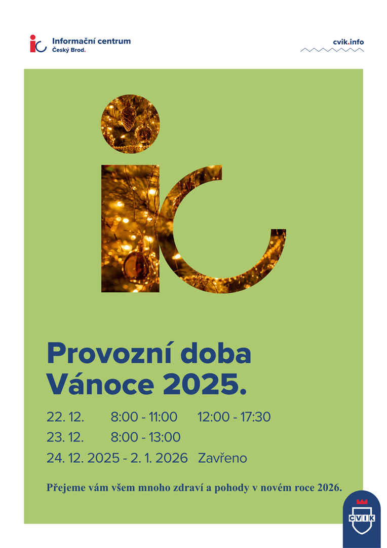 Vánoční provozní doba informačního centra 04.12.2025 Před Vánoci bude provozní doba informačního centra upravena. Mezi svátky bude informační centrum uzavřeno. Přejeme vám mnoho zdraví a pohody v novém roce 2026 a těšíme se na vás v pondělí 5. ledna. Zpět