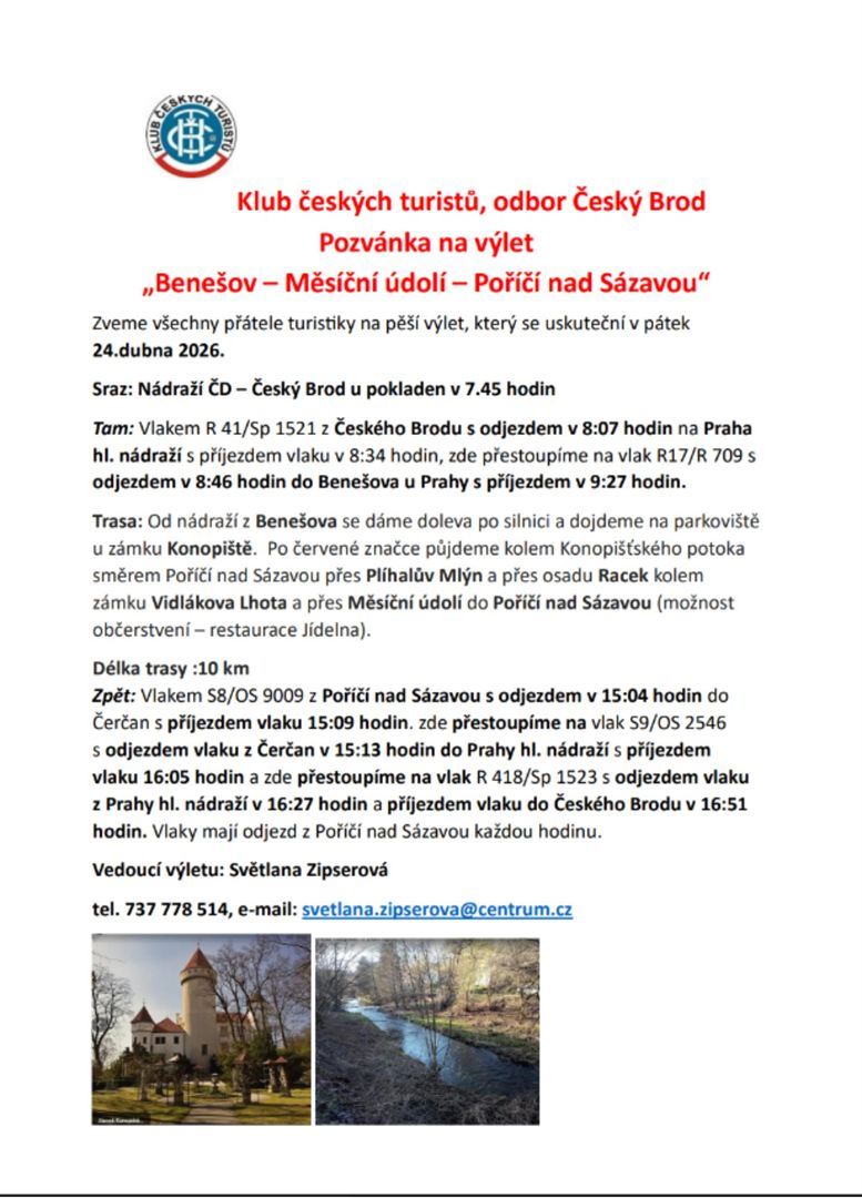 Výlet KČT: Benešov – Měsíční údolí – Poříčí nad Sázavou