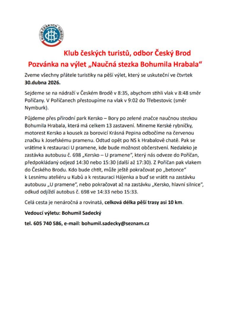 Výlet KČT: Naučná stezka Bohumila Hrabala