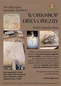 Přijďte si vyzkoušet jemnou práci se dřevem a vytvořit si vlastní originální obraz v reliéfu. Pro velký zájem opakujeme - první workshop dřevořezby proběhl v klidném tempu, s kávou nebo čajem a teplem z krbu. Krásný prostor, dobrá nálada, voňavá lípa a trpělivé vedení workshopu s Veronikou Slukovou.